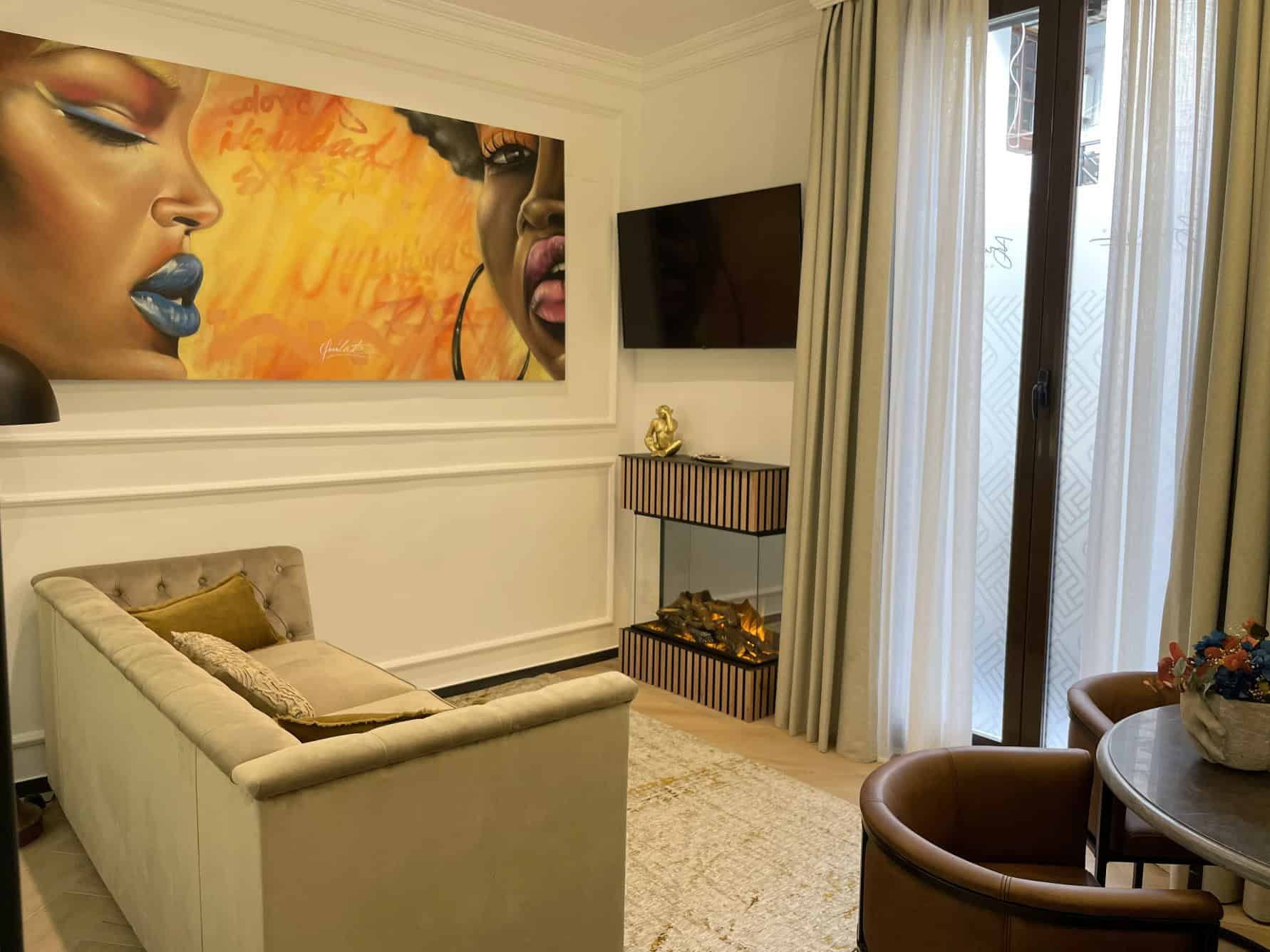 Sumérgete en la intimidad y la comodidad de nuestras exclusivas suites que abarcan espacios de 44 metros cuadrados. Con vistas a un encantador patio interior, estas estancias están diseñadas con un estilo elegante y funcional. Cada detalle ha sido cuidadosamente pensado para brindarte el máximo confort y relajación mientras disfrutas de tu estancia en la hermosa ciudad de Granada. Además, podrás apreciar obras de arte originales en tu habitación y disfrutar de una amplia selección de productos en su amplio salón satisfaciendo los gustos más exigentes.
