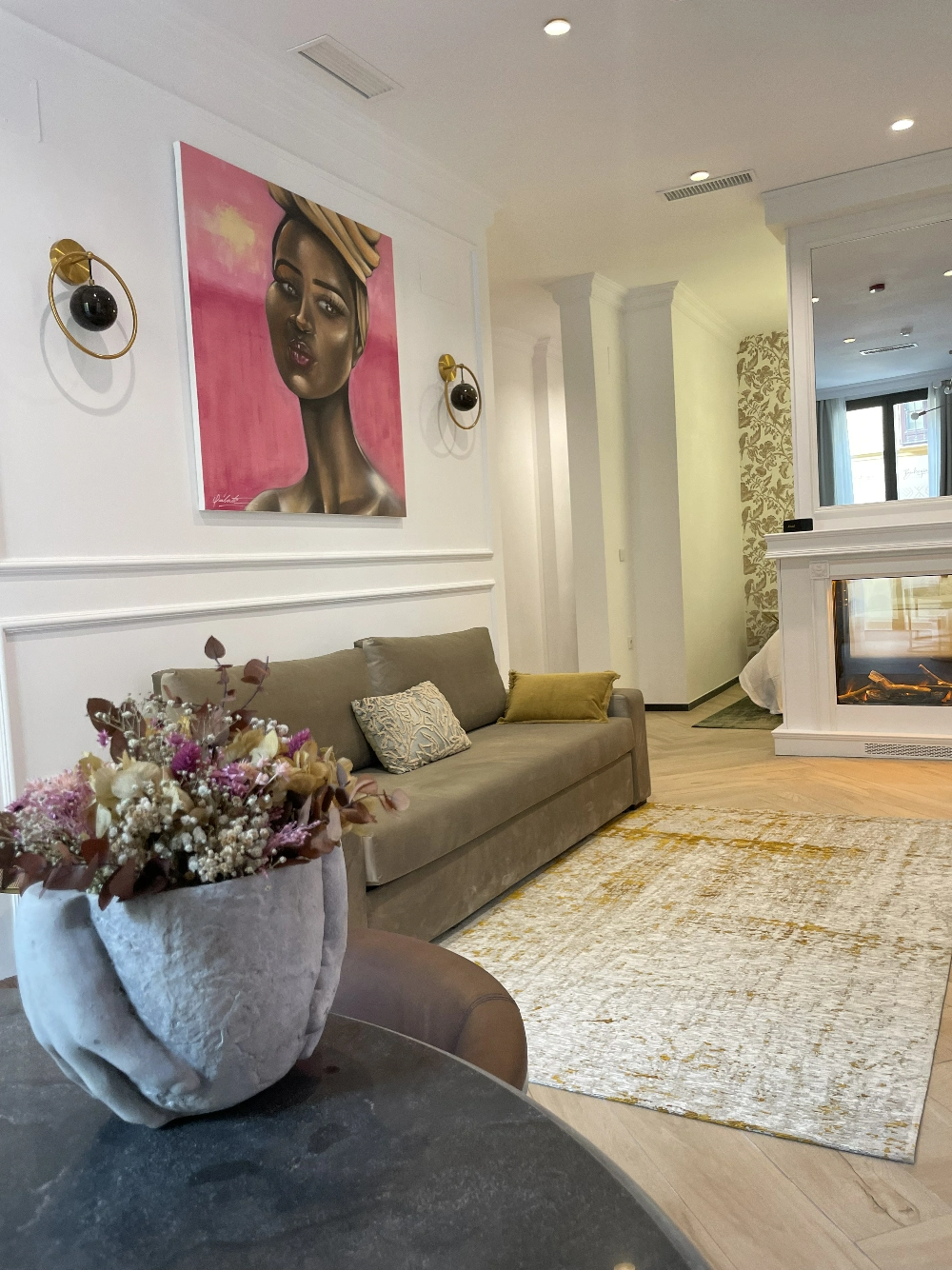 “Disfruta de la amplitud y comodidad de nuestra habitación de 45 m2 tipo loft con un estilo único, en Bubaqia House. Esta habitación cuenta con un generoso salón conectado a través de una acogedora chimenea túnel, ofreciendo un espacio mágico. Además, la habitación está adaptada para personas con movilidad reducida, asegurando una estancia cómoda para todos nuestros huéspedes. No solo encontrarás comodidad, sino también belleza, con obras de arte originales que adornan cada rincón de la habitación. Para satisfacer tus gustos, te ofrecemos un minimarket bien surtido, para que disfrutes de tu bebida favorita durante tu visita a la hermosa ciudad de Granada.”